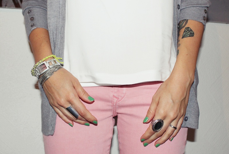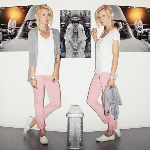 Tatsächlich habe ich nie zu den typischen Mädchen gehört. Ich wollte keine Prinzessin werden und konnte auch mit Pink und Rosa nur wenig anfangen. Mittlerweile hat sich das ein wenig geändert. Rosa bekommt immer mal wieder einen Platz in meinem Kleiderschrank, wenn auch nur selten. Beispielsweise in Form meiner neues Jeans von H&M. Unglaublich bequem und ein schöner dezenter Farbtupfer bei dem heutigen grauen Wetter. Kombinieren lässt es sich am schönsten mit grau und weiss. Eine Farbvariante, die zu jeder Jahreszeit funktioniert und einen irgendwie immer frisch aussehen lässt.