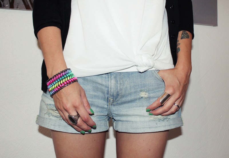 Cardigan – Zara | Top, Shorts – H&M | Pinke Cucks – Converse | Bandana – Killerkirsche | Tasche – Vans