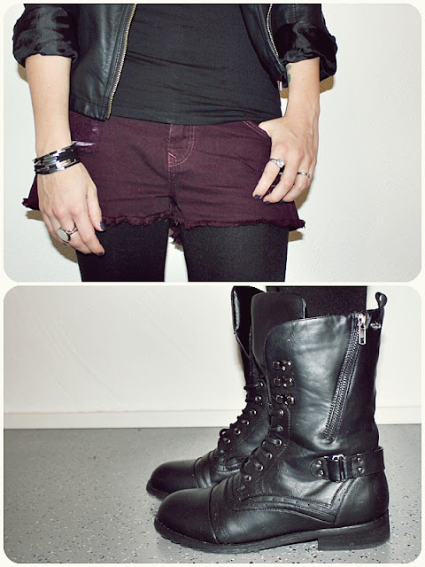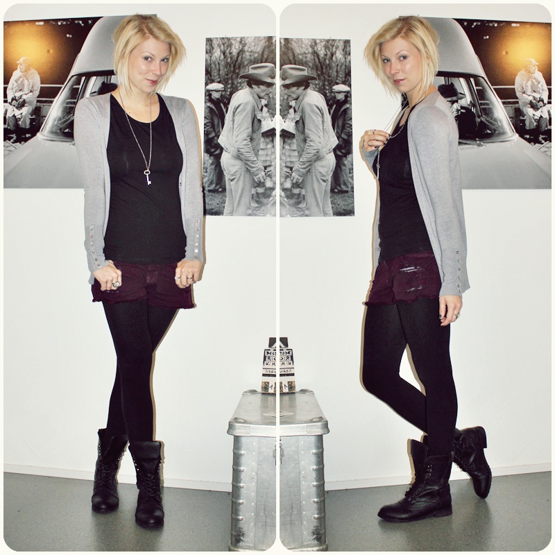 Outfit: Jeansshorts, Cardigan und Buffalo Bikerboots