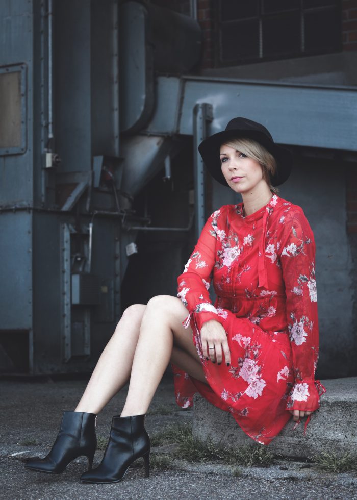 Fashionblogger Outfit rotes Kleid mit Blumen transparent Lederjacke schwarze Stiefeletten Hut (15) 9. August 2017 by Lavie Lavie